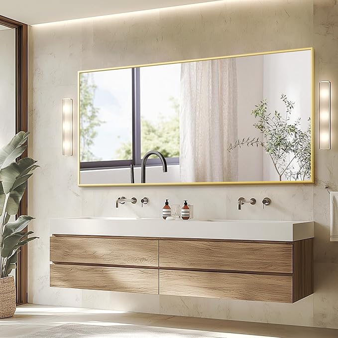 Full Length Mirror, 75"x35" Rectangle Standing Floor Full Body Mirror for Wall with Aluminum Alloy Frame for Bedroom, Living Room, Dressing Room(Gold)