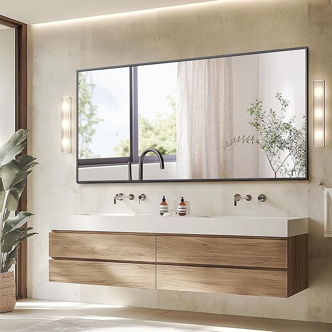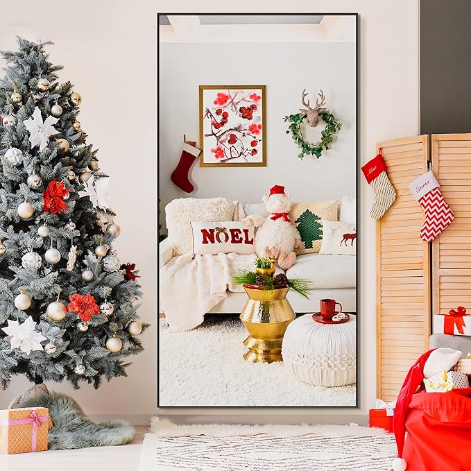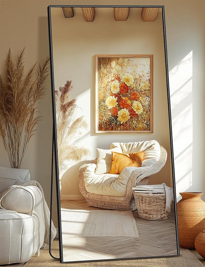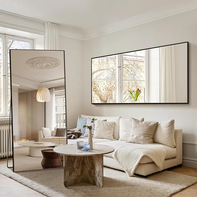 Full Length Mirror, 75"x35" Standing Floor Full Body Mirror for Wall with Aluminum Alloy Frame for Bedroom, Living Room, Dressing Room(Black)