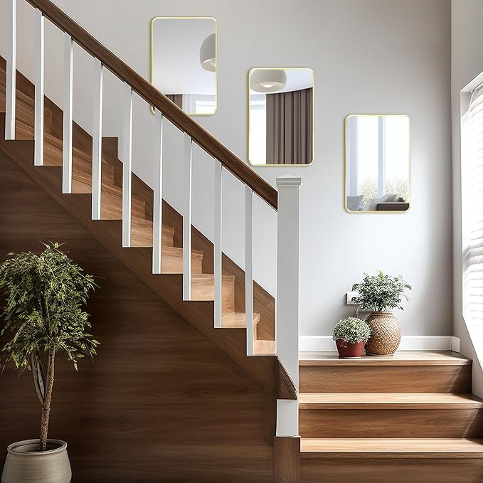 Wall Mount Mirror for Bathroom, Brushed Gold Metal Framed Rounded Corner Rectangular Vanity Mirror (18" x 24", Gold)