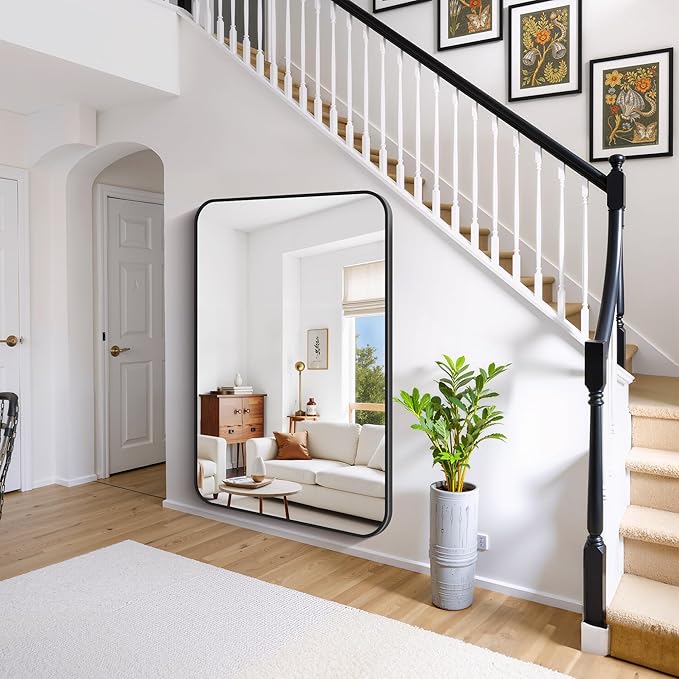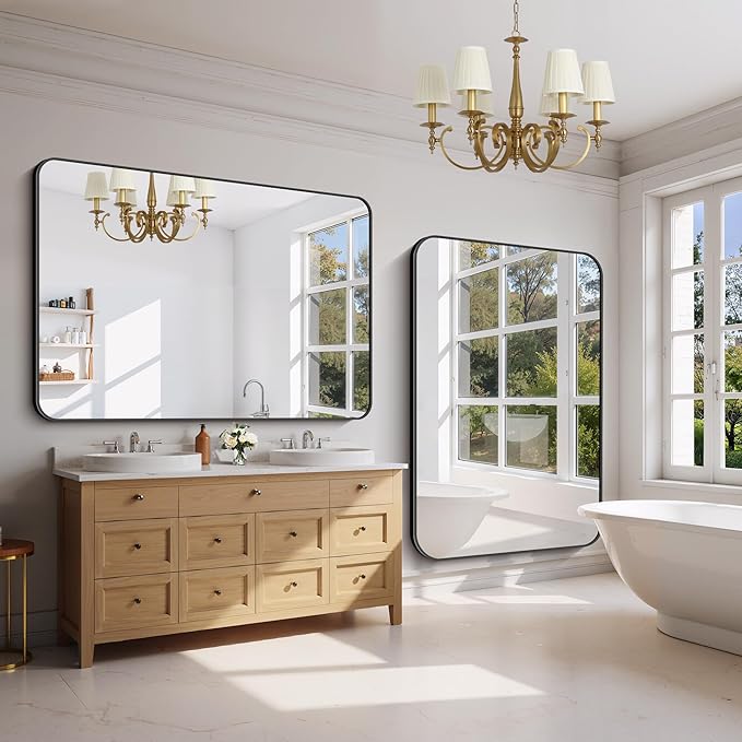 FORBATH Large Bathroom Mirror 60" x 40", Black Rectangle Metal Framed Rounded Corner Wide Wall Mounted Mirror for Bathroom Bedroom Entryway Decor(Horizontal/Vertical)