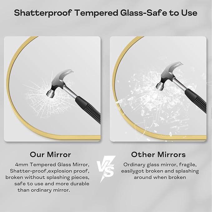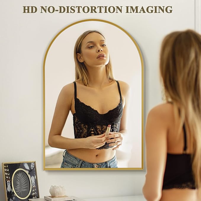 30" x 48" Gold Arched Mirror, Arch Wall Mirror, Metal Frame Black Bathroom Mirror, Arched Top Bathroom Vanity Mirror for Living Room, Bedroom, Entryway, Tempered Glass, Shatter Proof