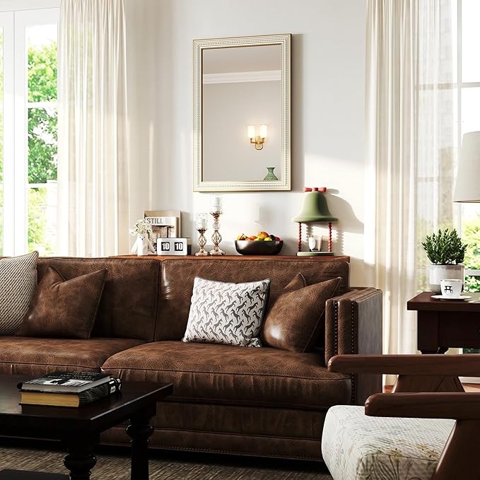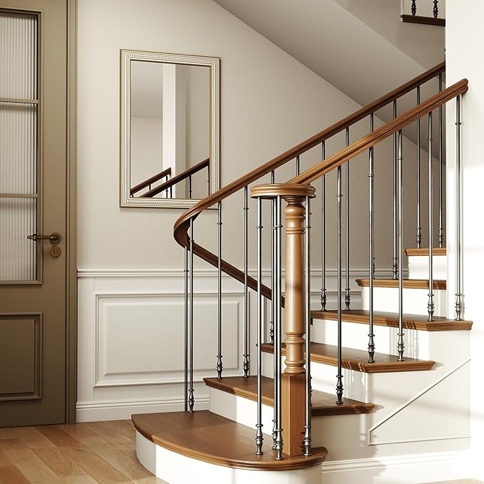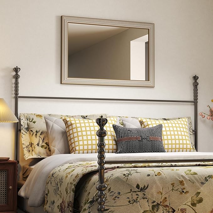 36x24 Inch Farmhouse Wooden Rectangle Mirrors for Wall with Beaded, Boho Decorative Rectangular Mirror for Bathroom, Living Room, Entryway, Foyer (Horizontal/Vertical Mount)
