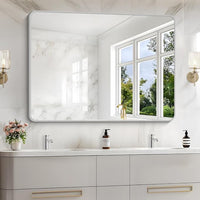 48x36 Inch Silver Bathroom Mirror, Large Rectangular Vanity Mirror, Metal Framed Rectangle Mirrors, Rounded Corner Wall Mounted Mirrors for Living Room Bedroom Entryway Horizontal or Vertical