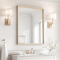 Oak Wood Effect Framed Wall Mirror, 22x30 Rectangle Mirror, 1/8" Anti-desilvering Tempered Glass, Sustainable& Sturdy Frame, Anti-Rust, HD Reflection &3min Fast Setup for Bathroom Living Room