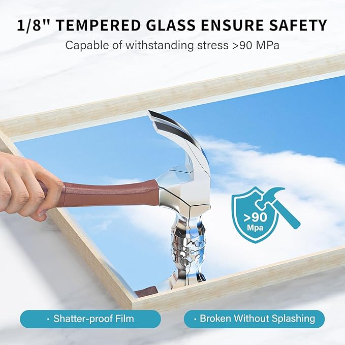 Oak Wood Effect Framed Wall Mirror, 24x36 Rectangle Mirror, 1/8" Anti-desilvering Tempered Glass, Sustainable& Sturdy Frame, Anti-Rust, HD Reflection &3min Fast Setup for Bathroom Living Room