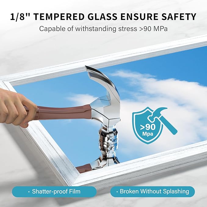 White Wood Effect Framed Wall Mirror, 24x36 Rectangle Mirror, 1/8" Anti-desilvering Tempered Glass, Sustainable& Sturdy Frame, Anti-Rust, HD Reflection &3min Fast Setup for Bathroom Living Room