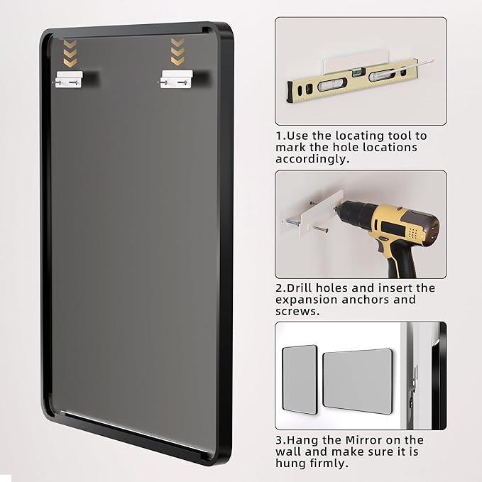 30x22 Bathroom Vanity Mirror for Wall, Aluminum Framed, Farmhouse Rectangle, Anti-Rust, HD Reflection Anti-Desilvering, Distortion Free, Tempered and Shatter-Proof Wall Mounted Mirror, Black