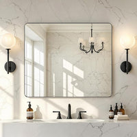 36x30 Bathroom Vanity Mirror for Wall, Aluminum Framed, Farmhouse Rectangle, Anti-Rust, HD Reflection Anti-Desilvering, Distortion Free, Tempered and Shatter-Proof Wall Mounted Mirror, Black
