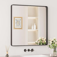 Keonjinn Black Bathroom Mirror for Over Sink, 30 x 30 Inch Rounded Rectangle Bathroom Vanity Mirror for Wall, Matte Black Farmhouse Mirror with Seamless Frame, HD Tempered Glass(Horizontal/Vertical)