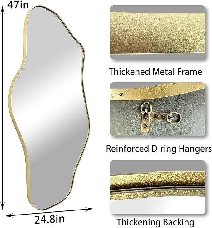 Irregular Wall Mirror, 47.2"x21.5" Asymmetrical Mirror with Gold Metal Frame, Cloud Shaped Waved Decorative Mirrors for Living Room Bathroom Bedroom Hallway Entryway Fireplace