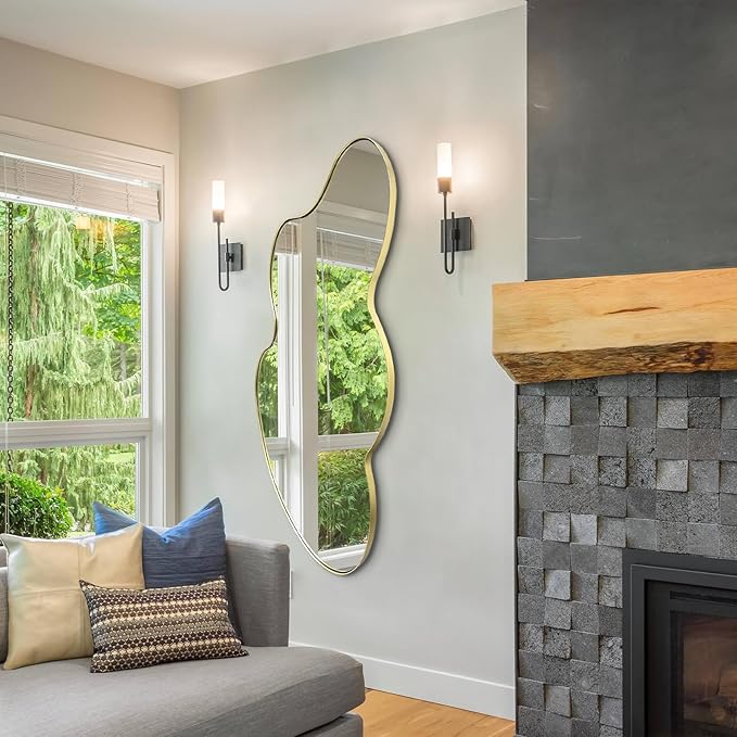 Gold Irregular Mirror, Asymmetrical Wall Mirror, 49.6"x26" Cloud Shaped Mirrors, Large Metal Frame Mirrors for Living Room Bathroom Bedroom Hallway Entryway Fireplace
