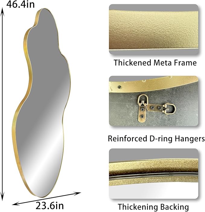 Gold Irregular Mirror, 23.6"x46.5" Asymmetrical Wall Mirror, Large Waved Mirrors with Metal Frame, Cloud Shaped Mirrors for Living Room Bathroom Bedroom Hallway Entryway Fireplace