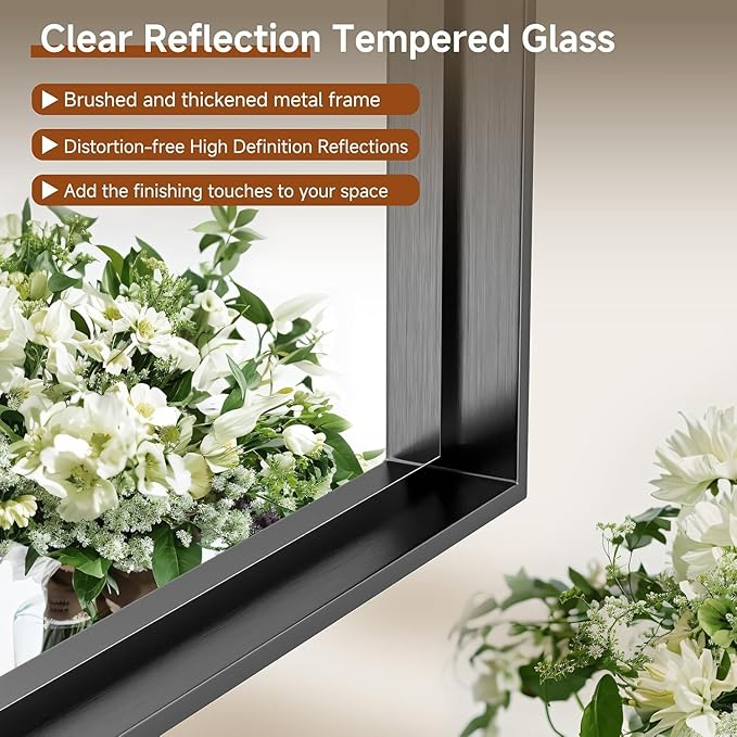 DENRICK 20X36 Wall Mounted Large Bathroom Mirror Black Bathroom Rectangular Vanity Mirror Matte Black Wall Mirror Metal Framed Farmhouse Mirrors Aluminum Frame Modern Rectangle Mirrors