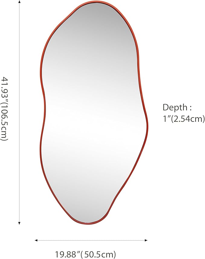 JONATHAN Y MIR200B Everly 20 in. W x 42 in. H Large Irregular Framed Decorative Wall Mirror, for Bathroom, Living Room, Bedroom, Red