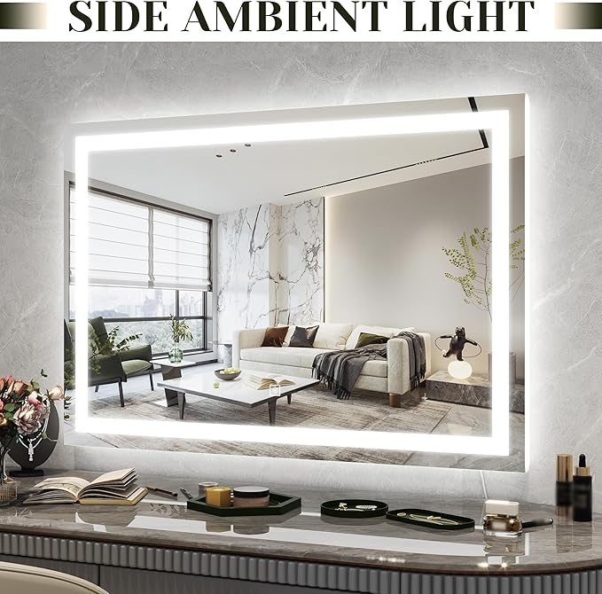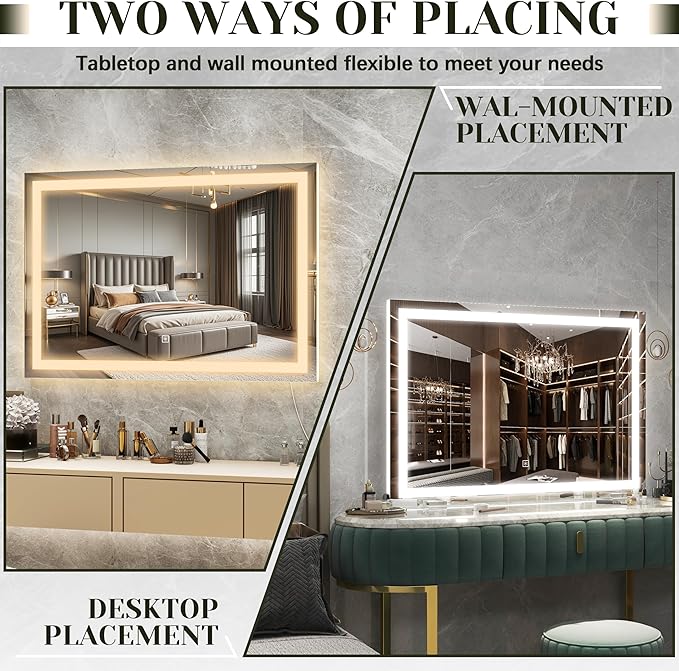 32x 22 Inch Large Lighted Vanity Mirror with Dimmable 3 Modes, LED Makeup Mirror for Bathroom & Dressing Room, Tabletop or Wall-Mounted, White