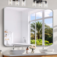 48x40 Inch Silver Bathroom Mirror, Large Rectangle Mirror, Metal Framed Rectangular Vanity Mirror, Rounded Corner Wall Mounted Mirror for Living Room Bedroom Entryway Horizontal or Vertical