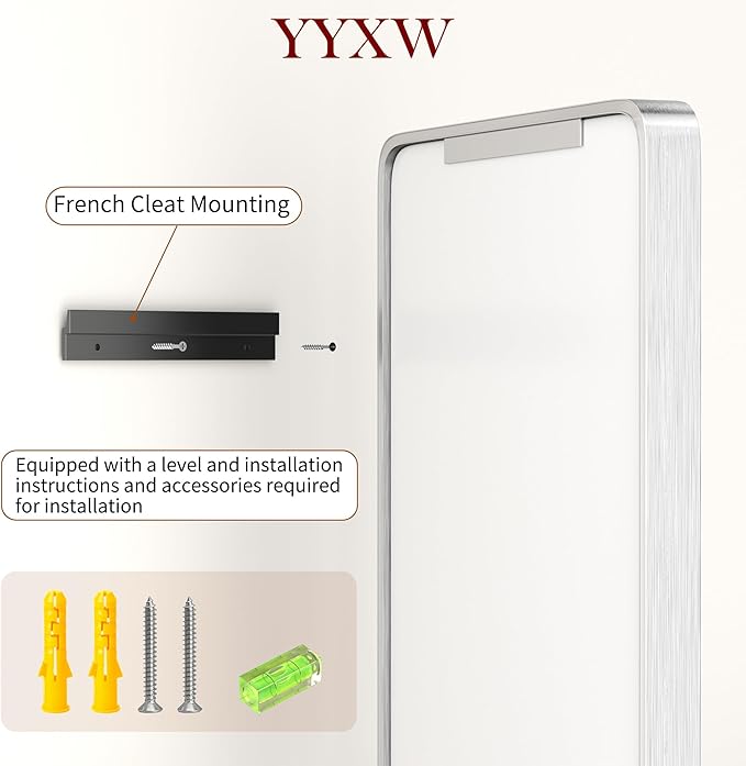 26X34 Inch Brushed Nickel Bathroom Mirror for Wall, Brushed Silver Metal Framed Mirror, Rounded Rectangle Silver Bathroom Mirrors, Tempered Glass, Anti-Rust, Hangs Horizontally or Vertically