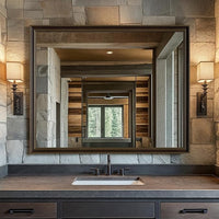 Retro Copper Effect Framed Wall Mirror, 32x40 Rectangle Mirror, 1/8"Anti-desilvering Tempered Glass, Sustainable&Sturdy Frame, Anti-Rust, HD Reflection &3min Fast Setup for Bathroom Living Room