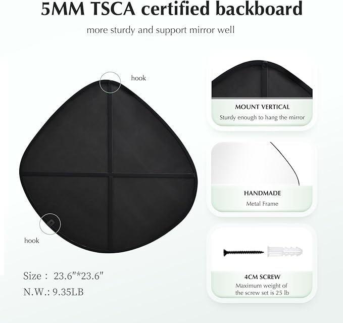 Irregular Wall Mirror Matel Matte Black Framed Wall Mirror for Living Room Bedroom Bathroom Entryway Wall Decor 24" L x 24" W ELE-004B