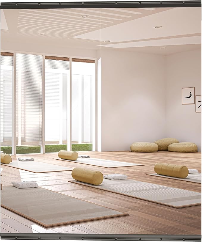 Hasipu 2 Pcs 63''x28'' Home Gym Mirror Large Full Length Wall Mounted Full Body Mirror for Yoga Dance Fitness Exercise Studio Bedroom Garage, Frameless Tempered Glass Workout Mirrors Black Rectangular