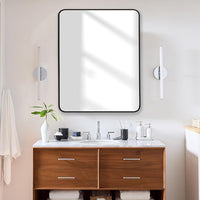 24x30 Inch Rectangle Bathroom Mirror with Black Metal Frame, Rounded Corner Rectangular Vanity Mirror for Wall, Modern Large for Bedroom, Living Room, Horizontal or Vertical