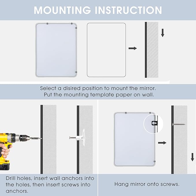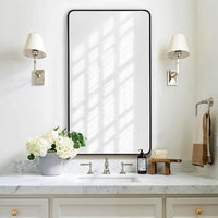 20x36 Inch Rectangle Bathroom Mirror with Black Metal Frame, Rounded Corner Rectangular Vanity Mirror for Wall, Modern Large for Bedroom, Living Room, Horizontal or Vertical