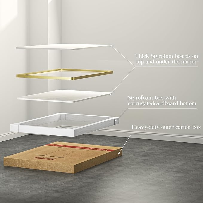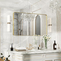 40×24 Gold Bathroom Mirror, Rectangular Bathroom Vanity Mirror for Wall with Rounded Corners & Aluminum Alloy Frame, Tempered-Glass, Modern, Farmhouse, Horizontal/Vertical, Entryway, Bedroom
