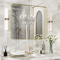 28×32 Glod Bathroom Mirror, Rectangular Bathroom Vanity Mirror for Wall with Rounded Corners & Aluminum Alloy Frame, Tempered-Glass, Modern, Farmhouse, Horizontal/Vertical, Entryway, Bedroom