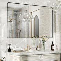 55×36 Black Bathroom Mirror, Rectangular Bathroom Vanity Mirror for Wall with Rounded Corners & Aluminum Alloy Frame, Tempered-Glass, Modern, Farmhouse, Horizontal/Vertical, Entryway, Bedroom