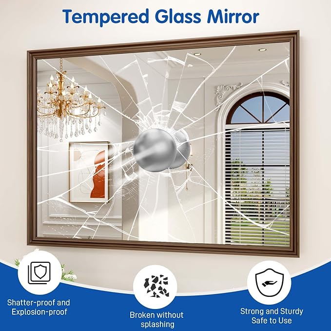 WEER Retro Copper Bathroom Mirror, 48x36 Inch Bronze Oil Rubbed Framed Mirror, Rectangle Classic Vintage Framed Wall Mirror, Farmhouse Vanity Mirror, Tempered Glass, Vertically or Horizontally