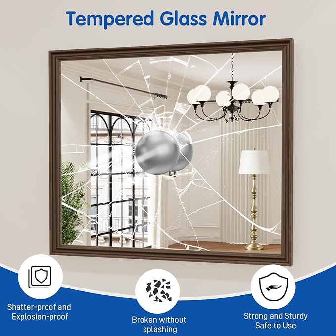 WEER Retro Copper Bathroom Mirror, 36x30 Inch Bronze Oil Rubbed Framed Mirror, Rectangle Classic Vintage Framed Wall Mirror, Farmhouse Vanity Mirror, Tempered Glass, Vertically or Horizontally