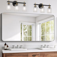 FORBATH 30x60 Inch Silver Bathroom Mirror for Over Sink, Large Rectangular Wall Mirror with Metal Frame, Rounded Corners for Bathroom, Bedroom, Entryway Decor (Horizontal or Vertical)