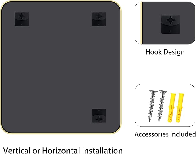 FORBATH 40x36 Inch Gold Bathroom Mirror for Over Sink, Large Rectanglar Wall Mirror with Metal Frame, Rounded Corners for Bathroom, Bedroom, Entryway Decor (Horizontal or Vertical)