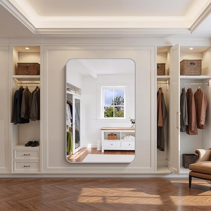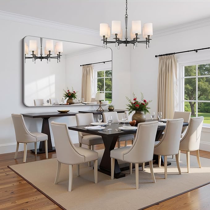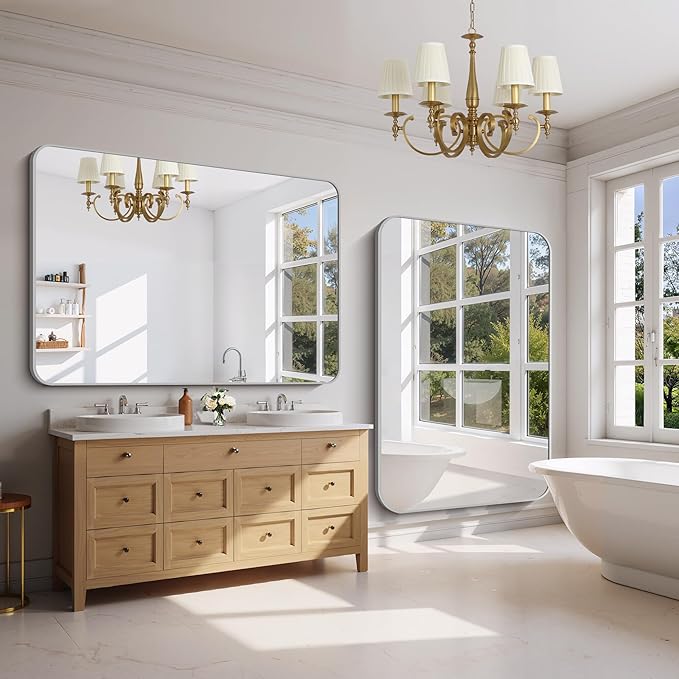 FORBATH 60x40 Inch Silver Bathroom Mirror for Over Sink, Large Rectangular Wall Mirror with Metal Frame, Rounded Corners for Bathroom, Bedroom, Entryway Decor (Horizontal or Vertical)