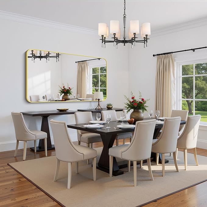 FORBATH 30x55 Inch Gold Bathroom Mirror for Over Sink, Large Rectangular Wall Mirror with Metal Frame, Rounded Corners for Bathroom, Bedroom, Entryway Decor (Horizontal or Vertical)