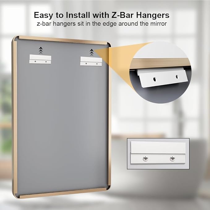 Gold 24x32 Inch Metal Framed Mirror for Wall, Large Rounded Rectangle Mirror, Anti-Rust, Tempered Glass, Hangs Horizontally or Vertically