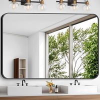 Large Bathroom Mirror, 60 x 40 inch Black Rectangle Mirror, Metal Framed Rectangular Vanity Mirror, Rounded Corner Wall Mounted Mirror for Over Sinks Bedroom Living Room Horizontal/Vertical