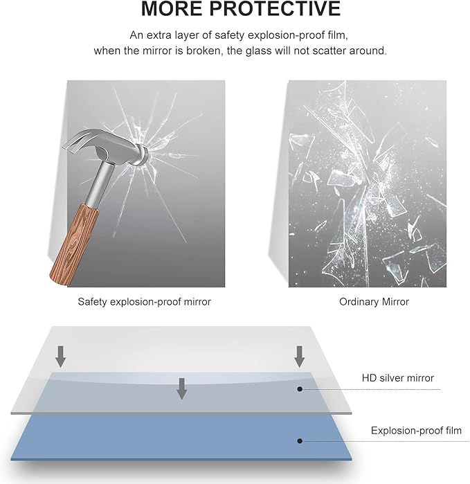 26x36 Inch Silver Bathroom Mirror - Copper-Free Mirror, Aluminum Alloy Frame Vanity Rectangle Wall Mounted Modern Mirror for Bedroom/Living Room/Porch Horizontal or Vertical