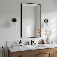 24"x30" Bathroom Wall Mirror with Matte Black Metal Frame & HD Glass, Copper-Free Mirrors Modern Rectangle Round Corner Framed Vanity Mirror - Horizontal or Vertical Installation