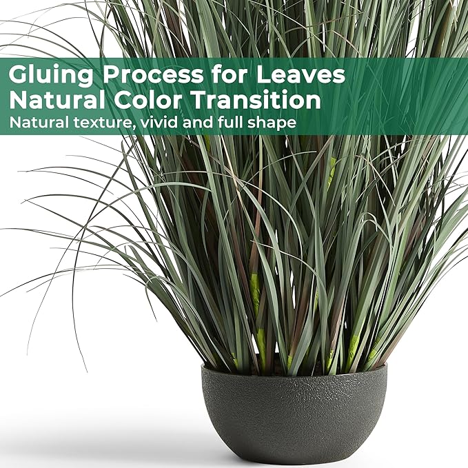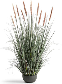 4ft Onion Grass, Artificial Plant and Greenery, Fake Floor Plants Indoor Outdoor, 48in Faux Horsetail Reed Grass with 10 Pink Flower Crowns, Potted, House Decorative