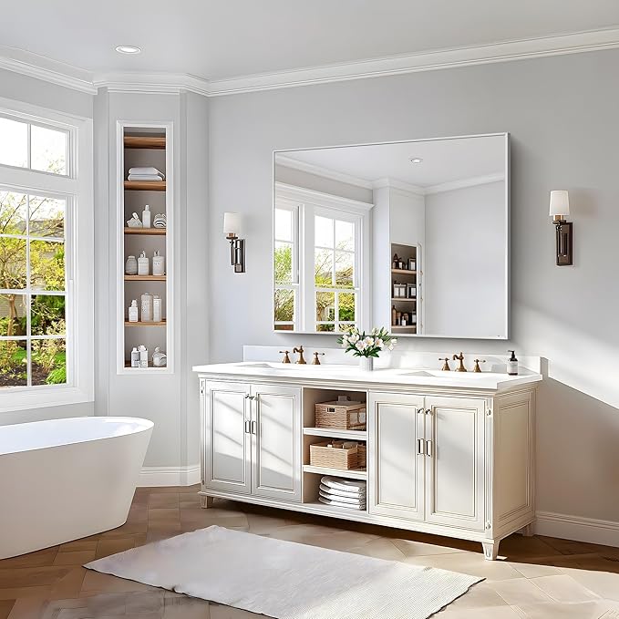 40x48inch Silver Bathroom Mirror, Silver Rectangle Mirror with Frame, Large Rectangular Wall Mirrors for Bathroom, Living Room, Hair Salon, Big Farmhouse Mirror Hang Horizontal/Vertical