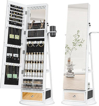 Mirror Jewelry Cabinet Standing, 360° Swivel Jewelry Armoire with 6 LED Lights, Rotatable Mirror Jewelry Organizer, White
