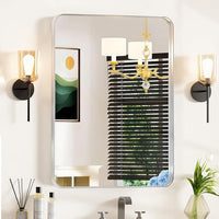 24×32 Silver Bathroom Mirror for Over Sink - Rectangular Bathroom Mirrors with Tempered Glass & Aluminum Frame, for Restroom Vanity, Entryway, Bedroom, Horizontal/Vertical, Rounded Corners
