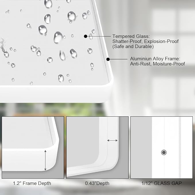 White 30x36 Inch Metal Framed Mirror for Wall, Large Rounded Rectangle Mirror, Anti-Rust, Tempered Glass, Hangs Horizontally or Vertically