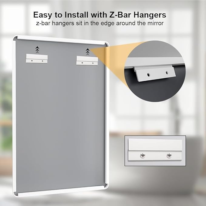 White 28x36 Inch Metal Framed Mirror for Wall, Large Rounded Rectangle Mirror, Anti-Rust, Tempered Glass, Hangs Horizontally or Vertically