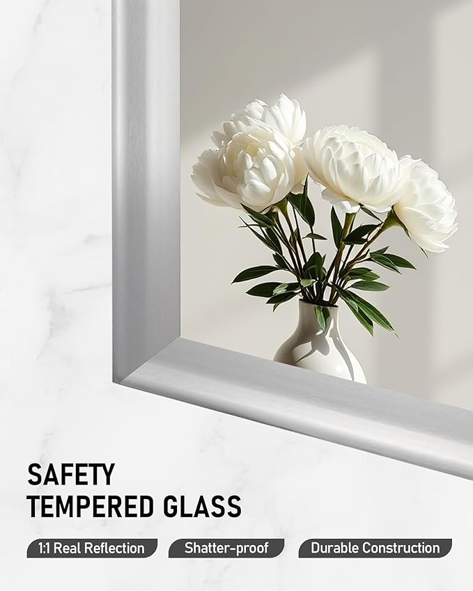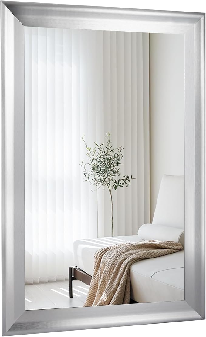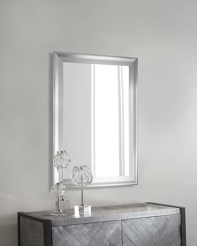 CULER Silver Wood Wall Mirror for Bathroom,Rectangle Rustic 24 x 36 inch Hanging Vanity Mirrors with Wooden Frame for Living Room,Bedroom,Entryway
