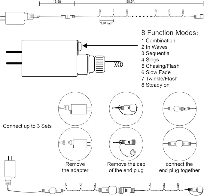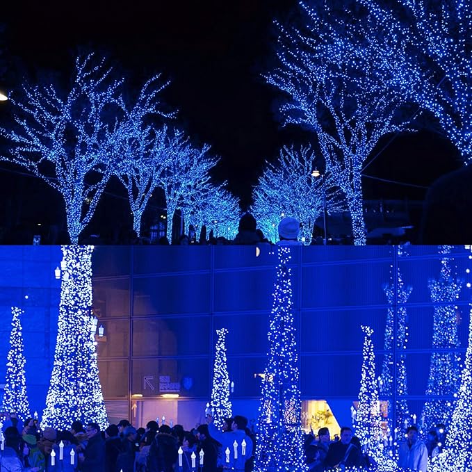 LJLNION 300 LED String Lights Outdoor Indoor, Extra Long 98.5FT Super Bright Christmas Lights, 8 Lighting Modes, Plug in Waterproof Fairy Lights for Holiday Wedding Party Bedroom Decorations (Blue)