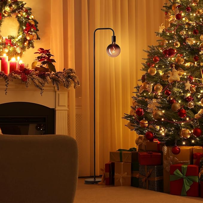 ONEWISH Floor Lamp for Living Room - Minimalist Industrial Standing Lamp with Modern LED Bulb, Globe Black Clear Glass 6", 1800K Warm Ambiant Lighting Decorative Tall Floor Lamp for Bedroom Office