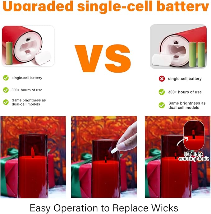 Flickering Flameless Candles Battery Operated with Remote and 2/4/6/8 H Timer Plexiglass Led Pillar Candles Pack of 9 (D2.3 xH 5" 6" 7") with Realistic Moving Wick Candles for Home Decor(Red)