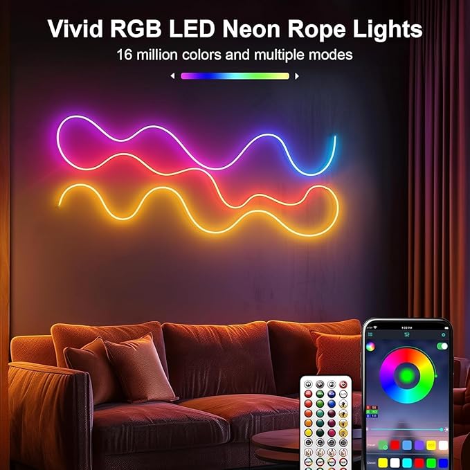 Neon Rope Lights - 32.8Ft Flexible LED Rope Lights,24V RGB Rope Lights Control with App/Remote Multiple Modes,DIY Design, IP65 Waterproof Strip Lights for Bedroom Room Outdoors Decor